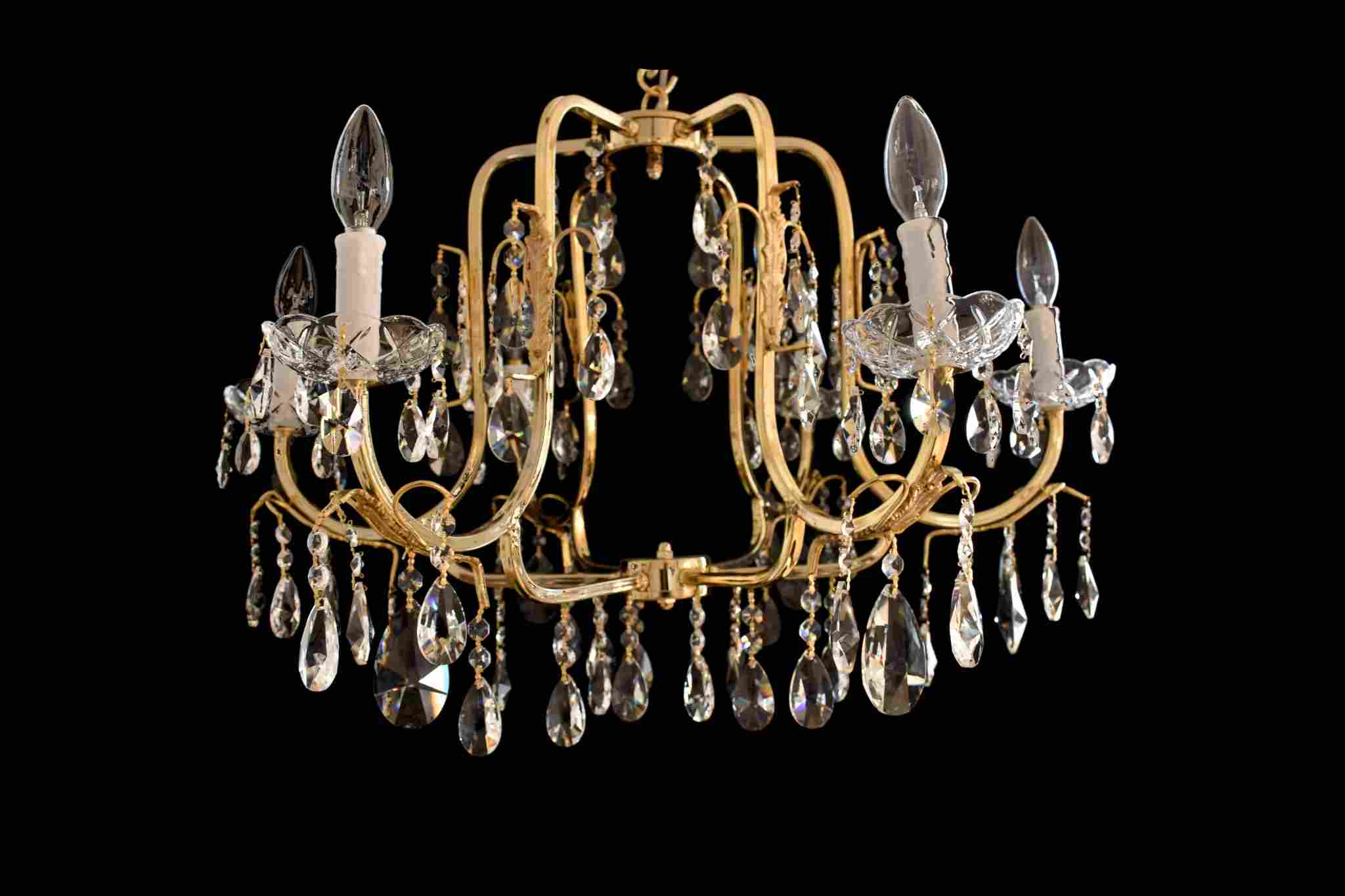Araña de cristal clásica dorada – Estilo María Antonieta con 6 luces