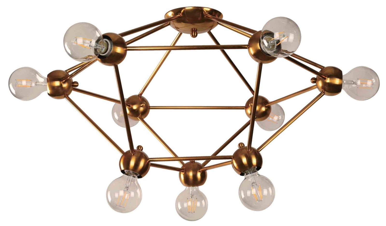 Tiene un diámetro de 71 cm y una altura fija de 63 cm, lo que permite su instalación tanto en techos altos como medios. Su estructura integra 9 bombillos tipo E27 LED cálidos (incluidos), que generan una luz suave y acogedora, perfecta para ambientar reuniones o espacios de descanso con un toque sofisticado.