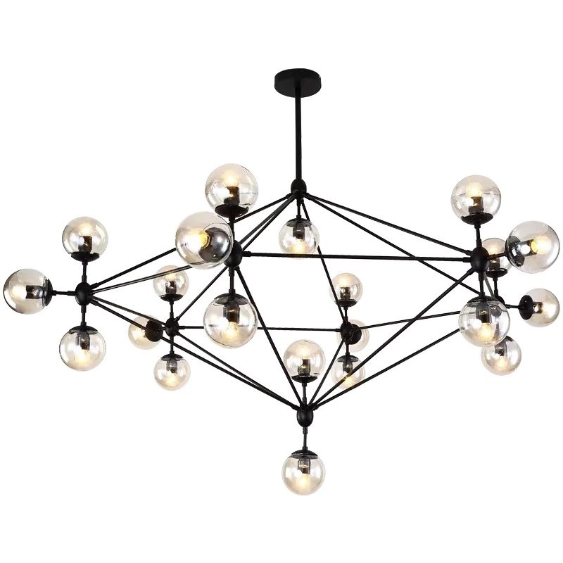 Lámpara vintage para techos altos – Modelo de 21 luces con bolas de vidrio ámbar